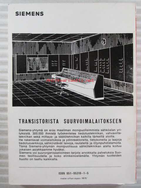 | Saatavilla | 1 kpl | | Julkaisuvuosi | 1975 | | Sivuja | 179 | | Painos | 4. | | Kunto | K2 | | Sidonta/painoasu | Nidottu (pehmeäk.) | | ISBN | 951-95318-1-5 | | Kielet | Suomi |