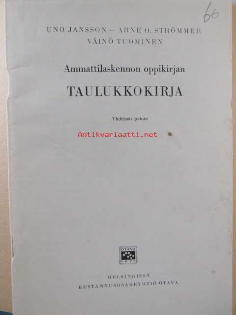 Uno Jansson, Arne O. Strömmer, Väinö Tuominen, Otava, 196114 x 20 cm.