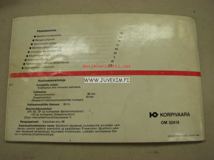 Korpivaara, 198714 x 22 cm ohjekirja.