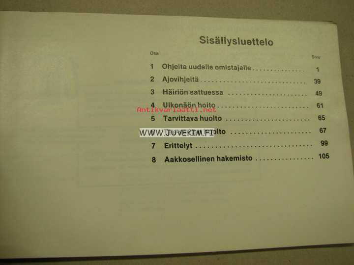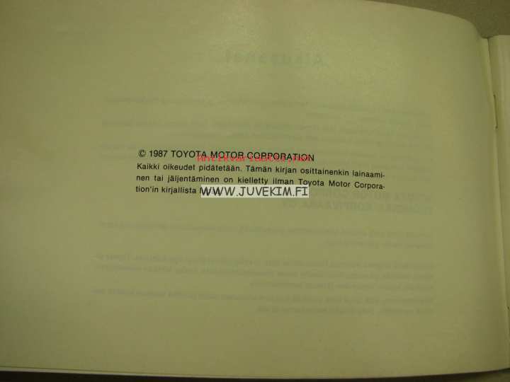| Saatavilla | 1 kpl | | Julkaisuvuosi | 1987 | | Sivuja | 104 | | Kunto | K3 | | Sidonta/painoasu | Nidottu (pehmeäk.) | | Kielet | Suomi |