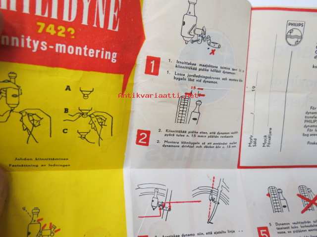 Philips Philidyne polkupyörädynamo kiinnitys / montering -esite