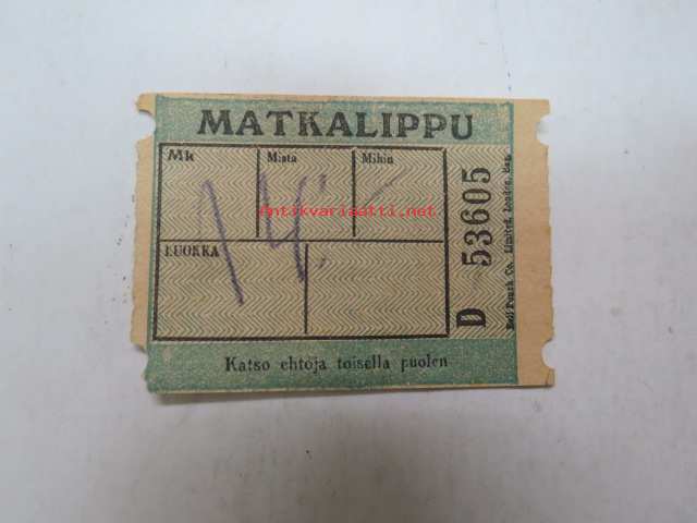 Matkalippu 14 mk, ei merkitty, mihin kulkuneuvoon ja missä / milloin - Bell Tarkkailu Oy valmistajana