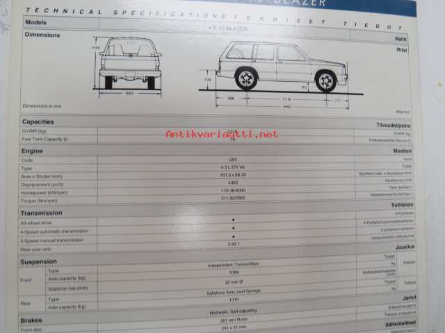 Chevrolet S-10 Blazer 1991 -myyntiesite