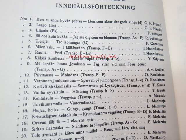 | Saatavilla | 1 kpl | | Julkaisuvuosi | 19?? | | Sivuja | 97 | | Painos | ? | | Kunto | K3 | | Sidonta/painoasu | Nidottu (pehmeäk.) | | Kielet | Suomi |