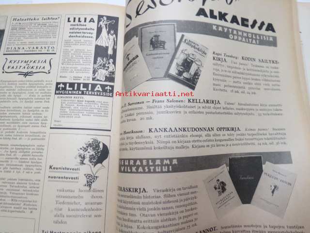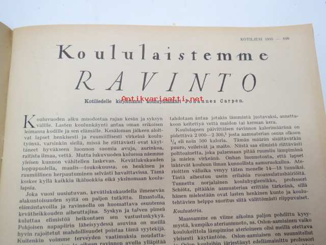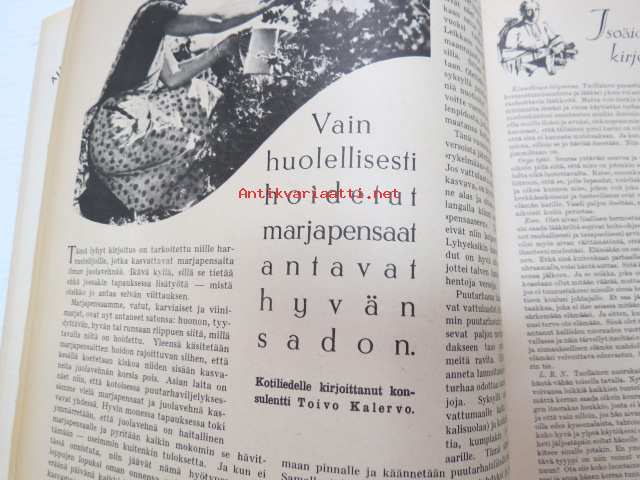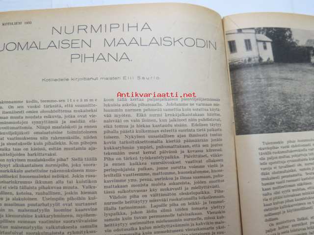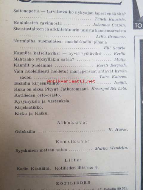Kotiliesi 1935 nr 18 syyskuu II, sis. mm. seur. artikkelit / kuvat / mainokset; Kansikuva piirtänyt Martta Wendelin, Oxygenol, Soitonopetus - tarvitsevatko nykyajan lapset enää sitä?, Koululaistemme ravinto, Arttu Brummer - Sisustustaiteen ja arkkitehtuurin uusista kauneusarvoista, Hoidetu marjapensaat, Nurmipiha suomalaisen maalaiskodin pihana, Heteka, Kieku ja Kaiku, Havin Prima keltainen saippua, ym.21 x 28 cm.