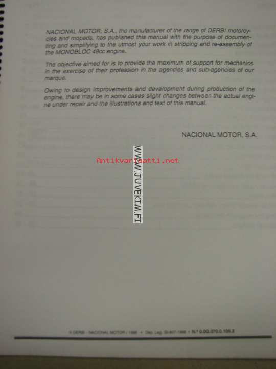 Nacional Motor, SA / Derbi, 1998A-4 kokoinen korjaamokirja.