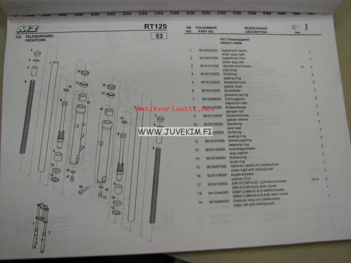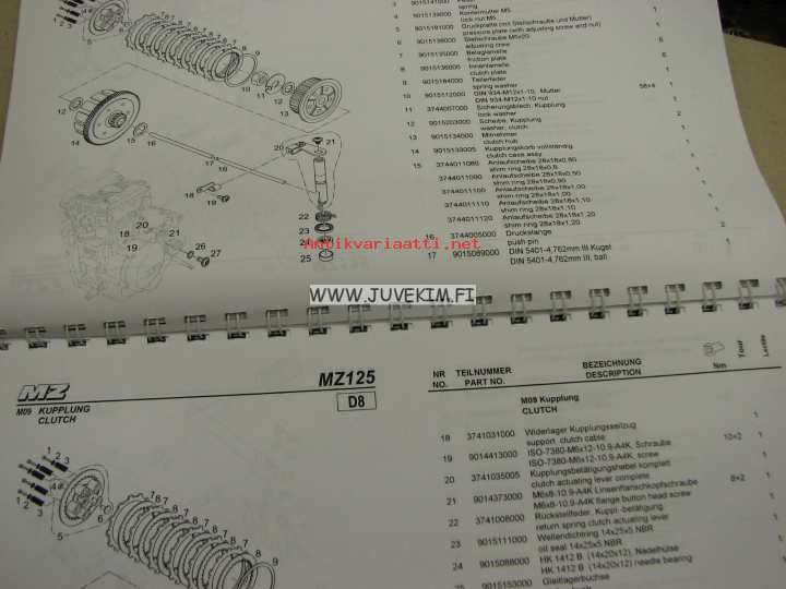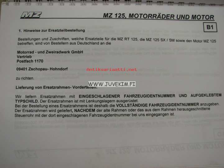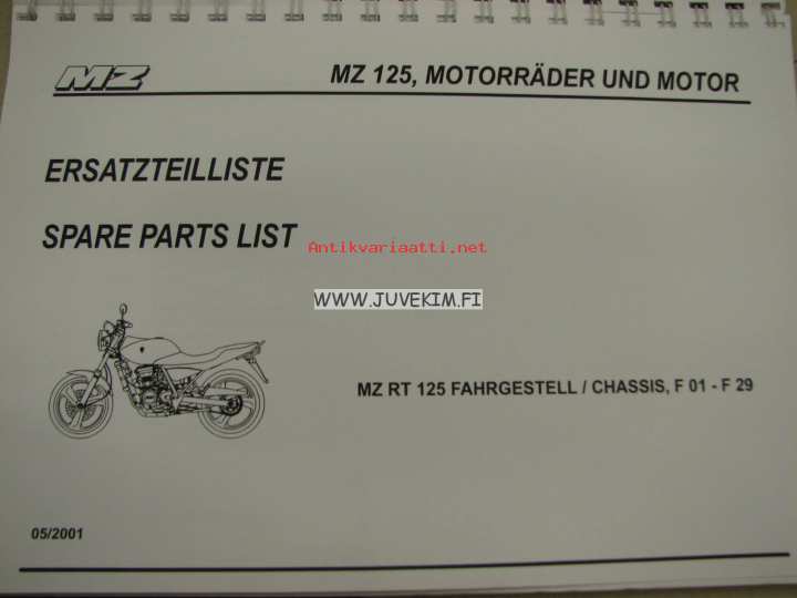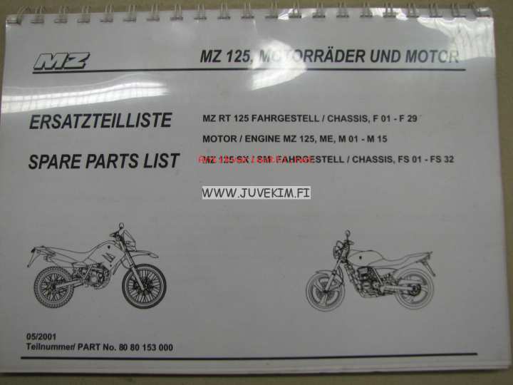 MZ RT125, 125 SX/SM -spare parts list, varaosaluettelo