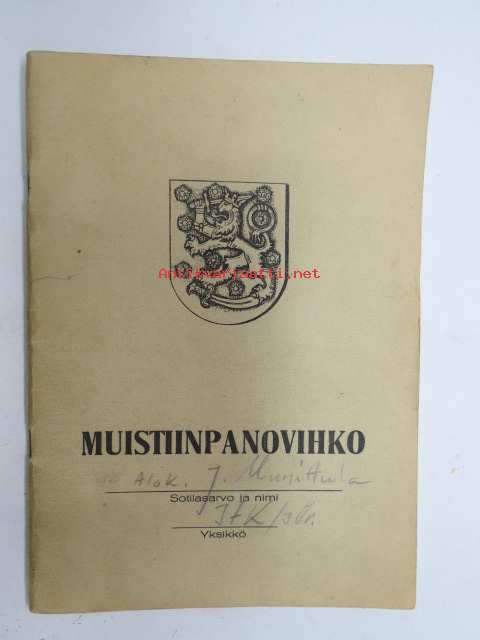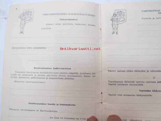 Muistiinpanovihko, varusmiehelle tarkoitettu ohjekirja ja yhdistetty muistiinpanovihko, sodanjälkeiseltä ajalta, kenraali Heiskasen ollessa Puolustusvoimain komentaja