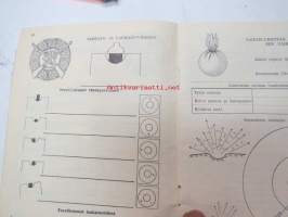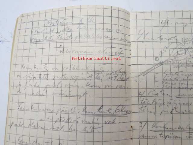 15 x 21 cm. 19 sivua tekstiä, 20-48 ruutudutettuja sivuja muistiinpanoille.