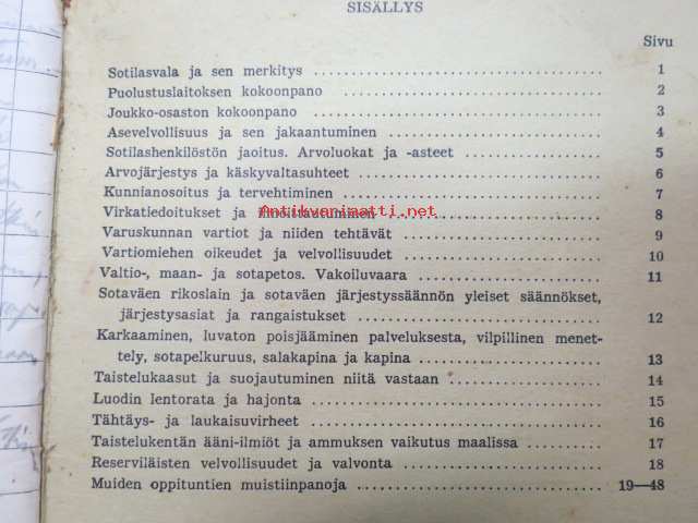 Muistiinpanovihko, varusmiehelle tarkoitettu ohjekirja ja yhdistetty muistiinpanovihko, sodanjälkeiseltä ajalta, kenraali Heiskasen ollessa Puolustusvoimain