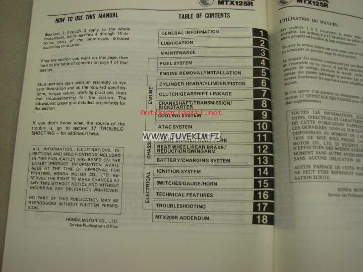 Honda MTX125R, MTX200R -shop manual, korjaamokirja