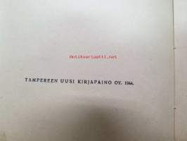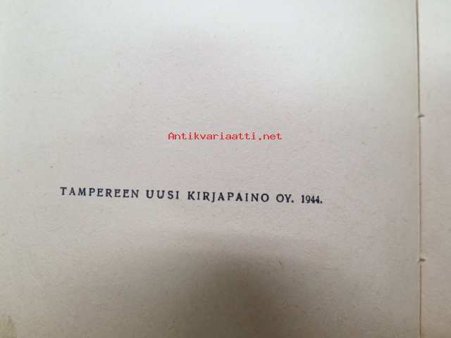 | Saatavilla | 1 kpl | | Julkaisuvuosi | 1944 | | Sivuja | 77 | | Painos | 1. | | Kunto | K2 | | Kulunut | | Sidonta/painoasu | Kuvitettu kovakantinen | | Kielet | Suomi |
