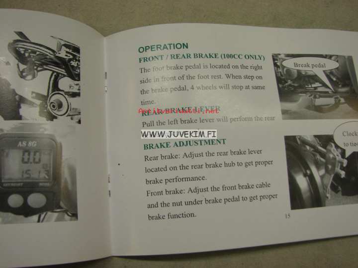 Herchee Motorscooter ATV Road version -owner´s manual, käyttöohjekirja