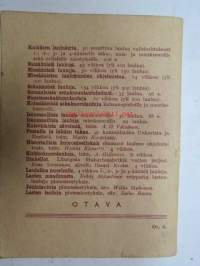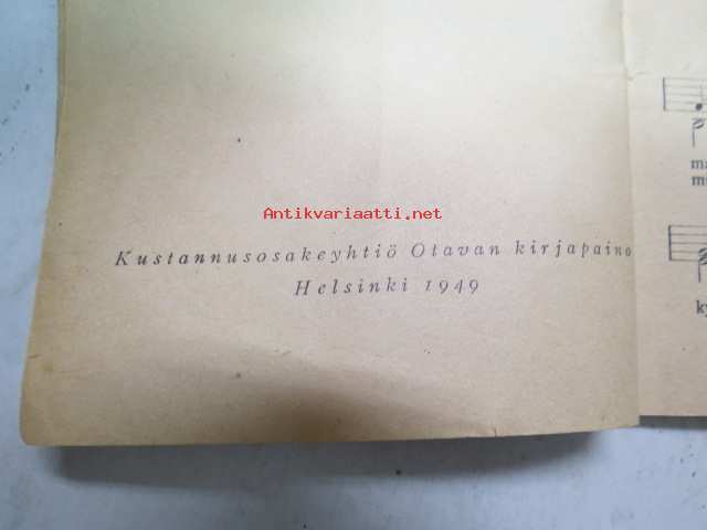 | Saatavilla | 1 kpl | | Julkaisuvuosi | 1949 | | Sivuja | 64 | | Painos | 3. | | Kunto | K2 | | Sidonta/painoasu | Nidottu (pehmeäk.) | | Kielet | Suomi |