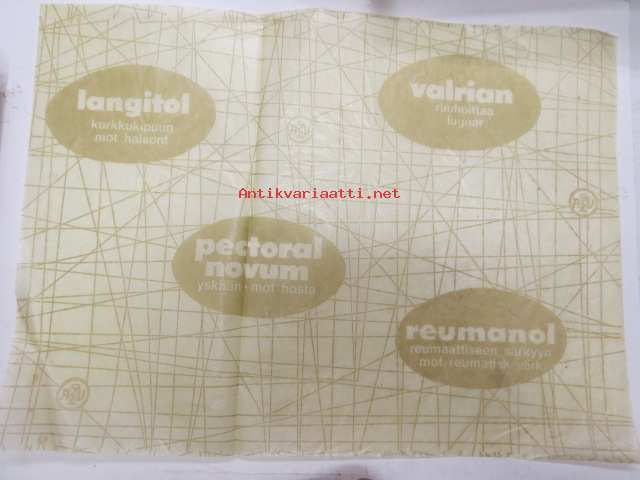 Langitol / Valrian / Pectoral Novum / Reumanol -apteekkikäärepaperi
