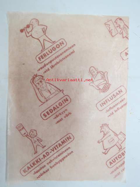 Ferlugon / Sedalgin / Kalkki-AD-Vitamin / Influsan -apteekkikäärepaperi