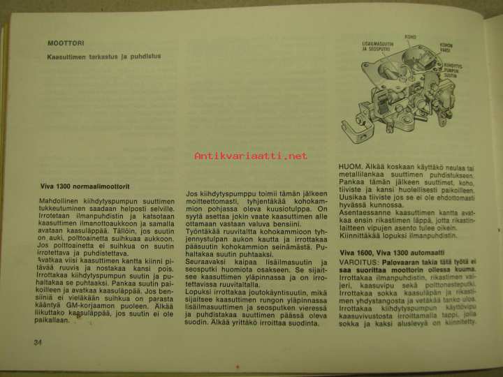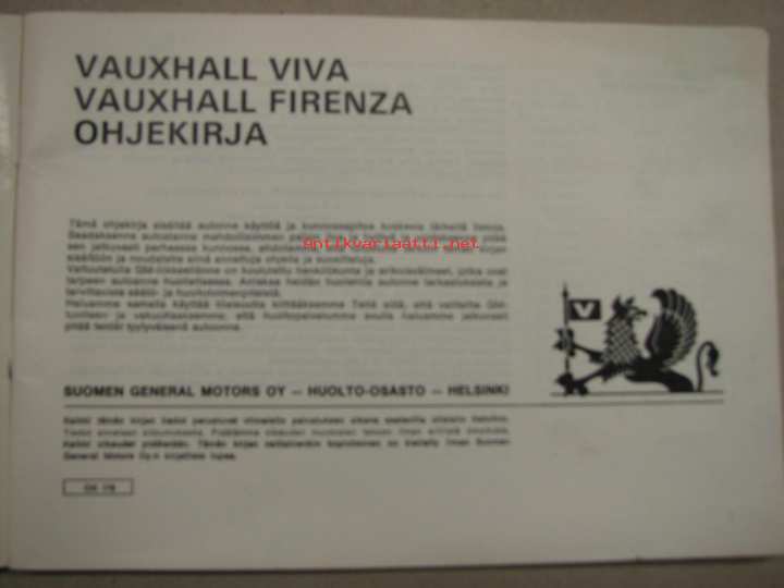 Vauxhall Viva, Firenza -käyttöohjekirja
