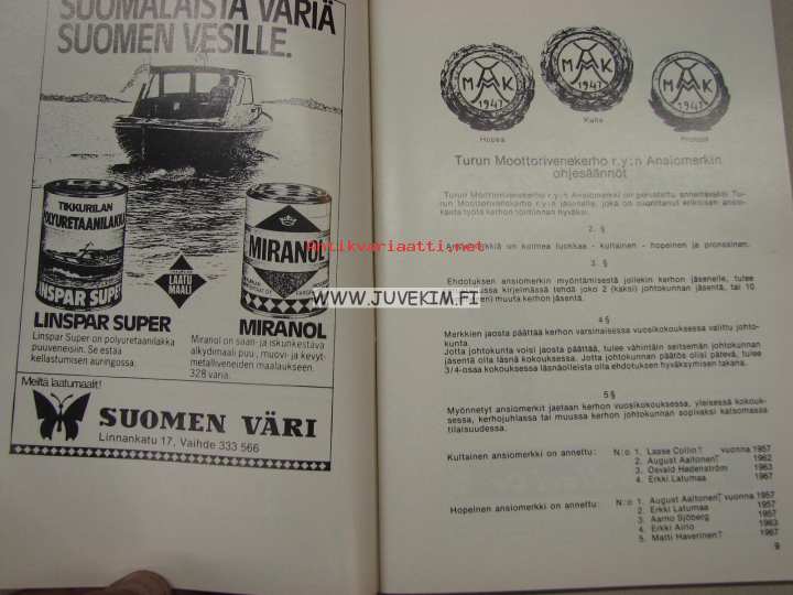Turun Moottorivenekerho ry, 197715 x 21 cm kirja.