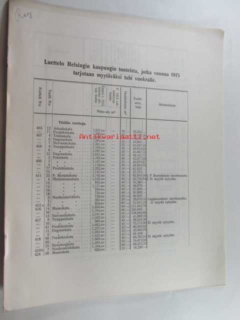 Luettelo Helsingin kaupungin tonteista, jotka vuonna 1915 tarjotaan myytäväksi tahi vuokralle