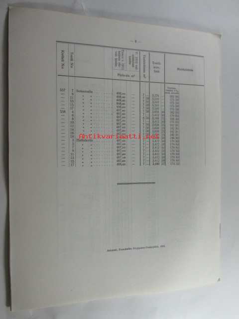 | Saatavilla | 1 kpl | | Julkaisuvuosi | 1915 | | Sivuja | 8 | | Painos | 1. | | Kunto | K3 | | Sidonta/painoasu | Pienpainate | | Kielet | Suomi |