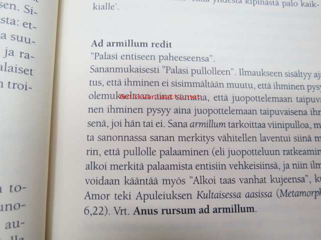| Saatavilla | 1 kpl | | Julkaisuvuosi | 2001 | | Sivuja | 309 | | Painos | 1. | | Kunto | K3 | | Sidonta/painoasu | Kuvitettu kovakantinen | | ISBN | 951-23-4218-9 | | Kielet | Suomi |