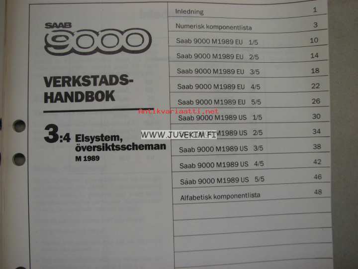 Saab 9000 3:4 Elsystem, översiktsscheman M 1989 -korjaamokirjasarjan osa