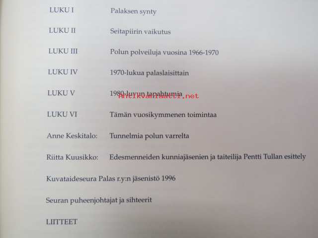 | Saatavilla | 1 kpl | | Julkaisuvuosi | 1996 | | Sivuja | 60 | | Painos | 1. | | Kunto | K3 | | Sidonta/painoasu | Nidottu (pehmeäk.) | | Kielet | Suomi |