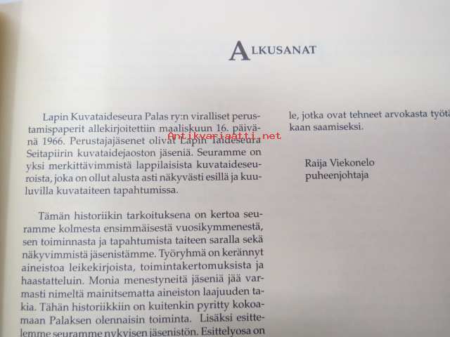 Toimittanut Matti Rapakko, Lapin Kuvataideseura Palas ry, 199621 x 21 cm.