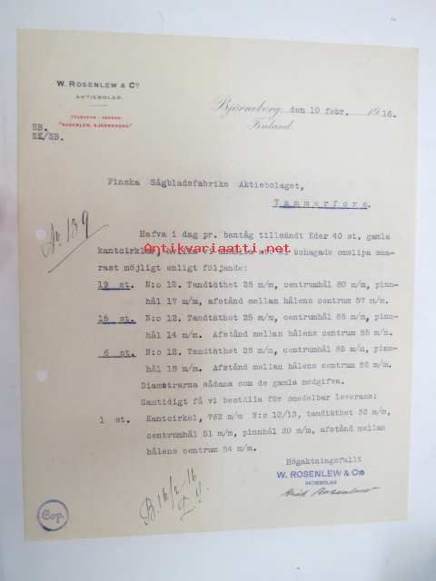 W. Rosenlew & Co Ab, 10.2.1916 -asiakirja
