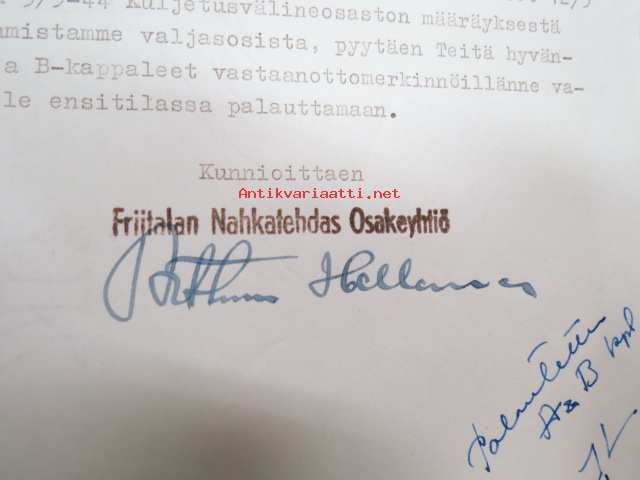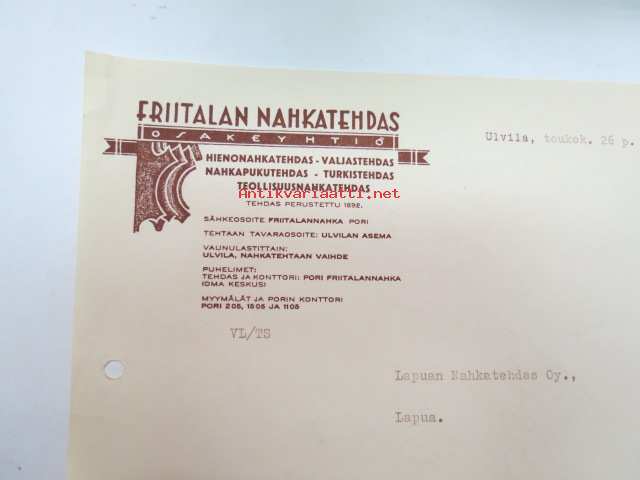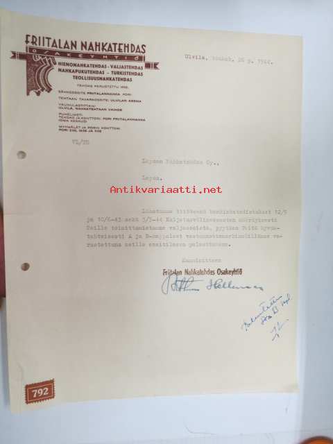 Friitalan Nahkatehdas Oy, Ulvila, 26.5.1944 -asiakirja