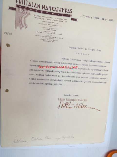 Friitalan Nahkatehdas Oy, Ulvila, 11.6.1940 -asiakirja