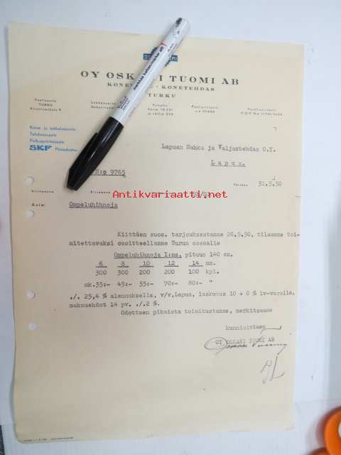 Oy Oskari Tuomi Ab, Turku, 31.5.1950 -asiakirja