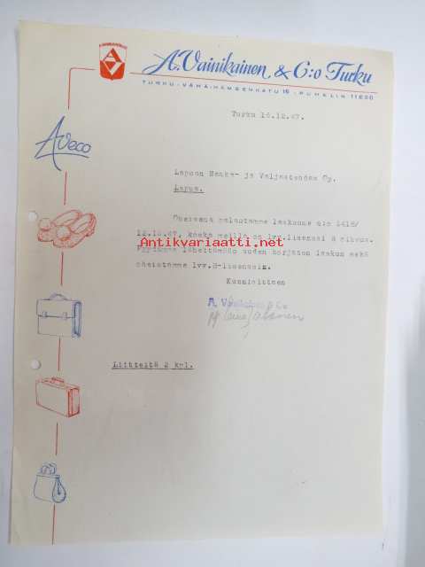 A. Vainikainen & Co, Turku, 16.12.1947 -asiakirja