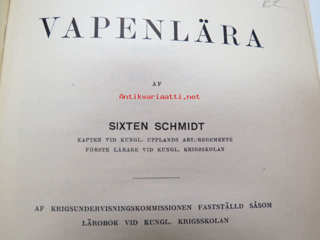 Vapenlära af krigsundervisningskommissionen fastställd såsom lärobok vid kungl. Krigsskolan -aseoppikirja