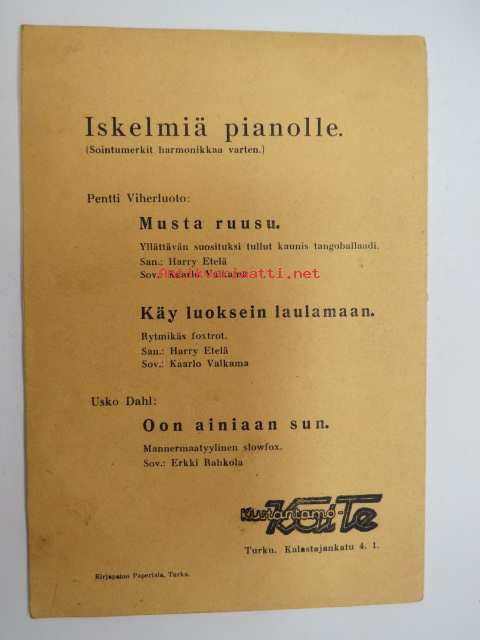 Erkki Niemi, Harry Etelä, Kustantamo Kal-Te, 195?