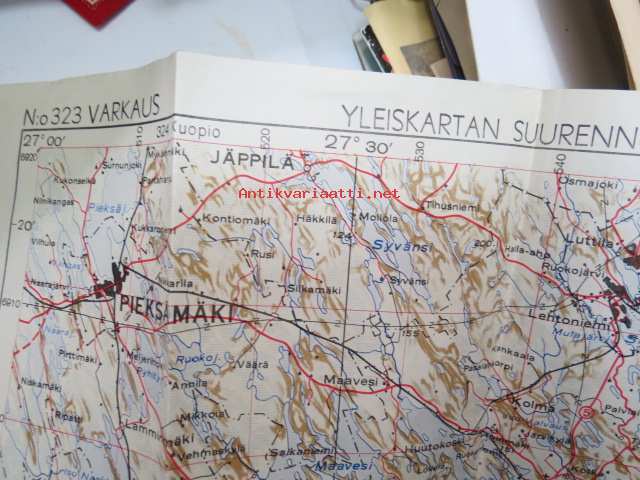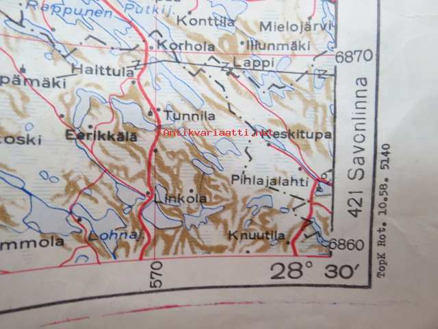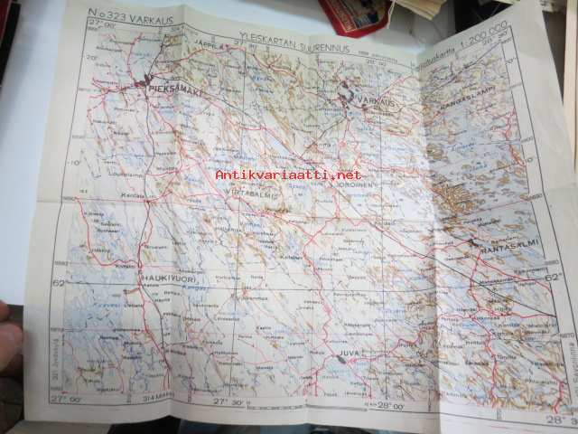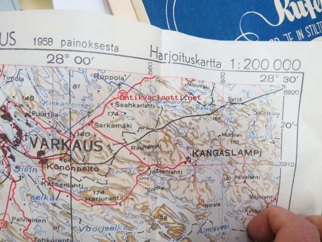 Varkasu - Yleiskartan suurennos 1958 painoksesta - Harjoituskartta Ristiina 1 : 200 000 TopK (Topografikunta?) Rot. 10.58 -kartta