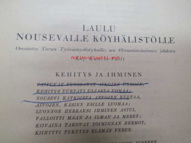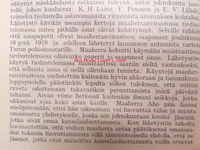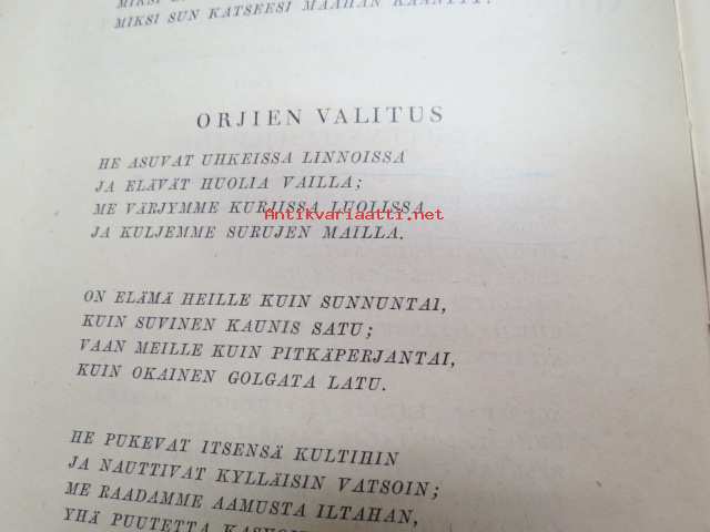 | Saatavilla | 1 kpl | | Julkaisuvuosi | 1927 | | Sivuja | 255 | | Painos | 1. | | Kunto | K2 | | Sidonta/painoasu | Sidottu (kovak.) | | Kielet | Suomi |