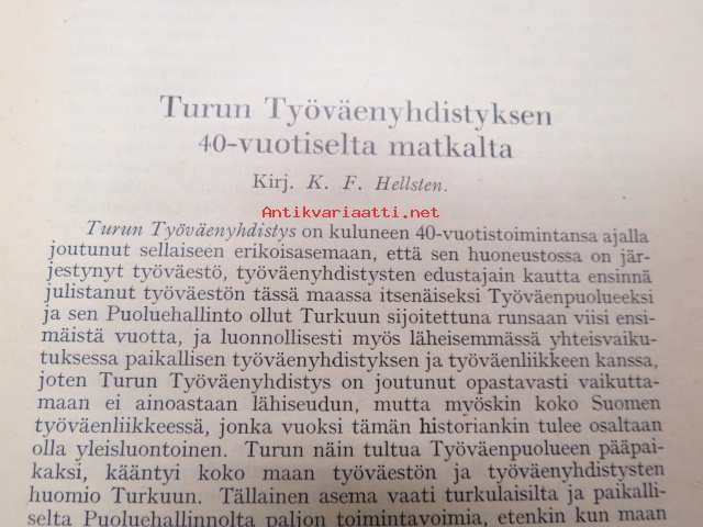 Turun Työväenyhdistys 40-vuotias 1887-1927