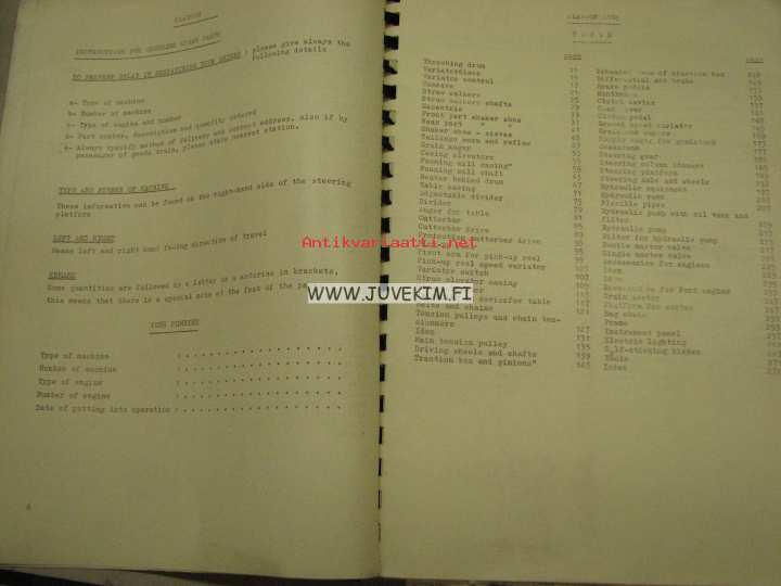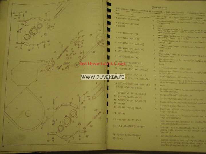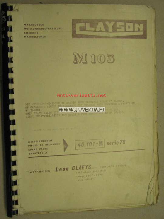 Clayson M103 leikkuupuimuri -varaosaluettelo