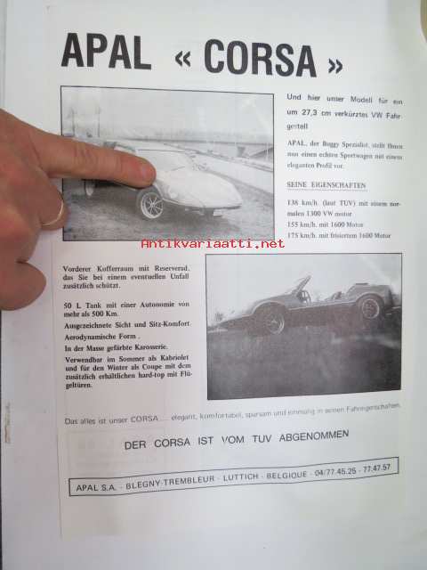 APAL Corsa - auton rakennussarja -myyntiesite