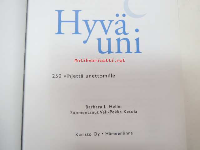 | Saatavilla | 1 kpl | | Julkaisuvuosi | 2002 | | Sivuja | 194 | | Painos | 1. | | Kunto | K3 | | Sidonta/painoasu | Kuvitettu kovakantinen | | ISBN | 951-23-4269-3 | | Kielet | Suomi |