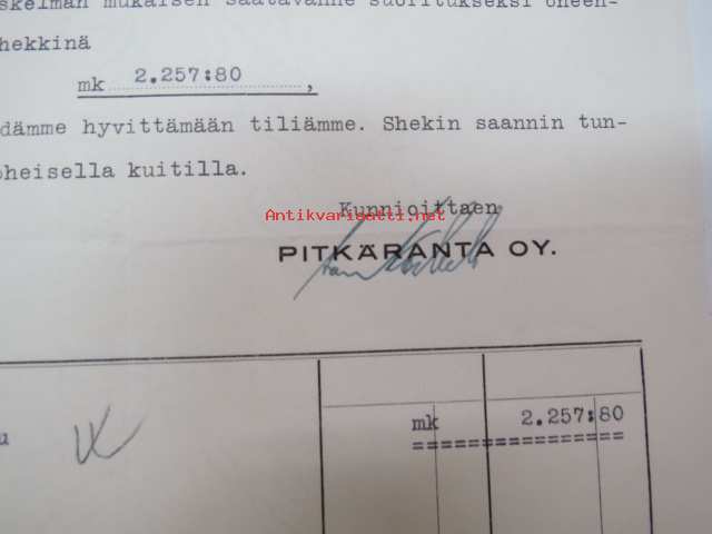 Pitkäranta Oy, Pitkäranta (Nurmisaari), 25.9.1939 -asiakirja