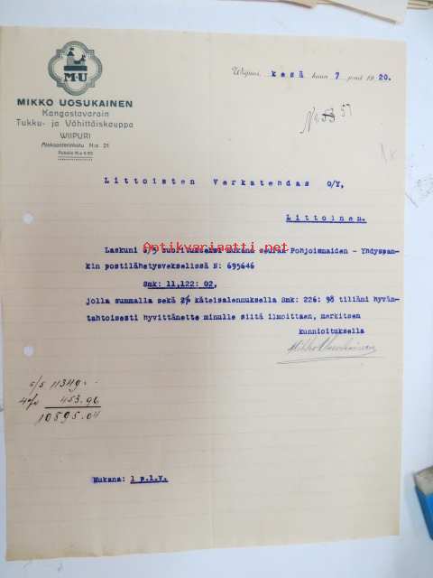 Mikko Uosukainen, Wiipuri (Viipuri), 7.6.1920 -asiakirja