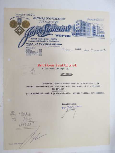 Juho Lindgrén, Wiipuri, (Viipuri) 31.7.1928 -asiakirja