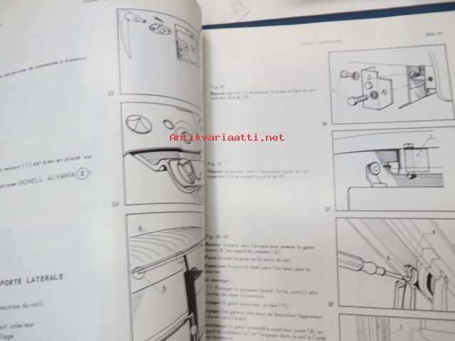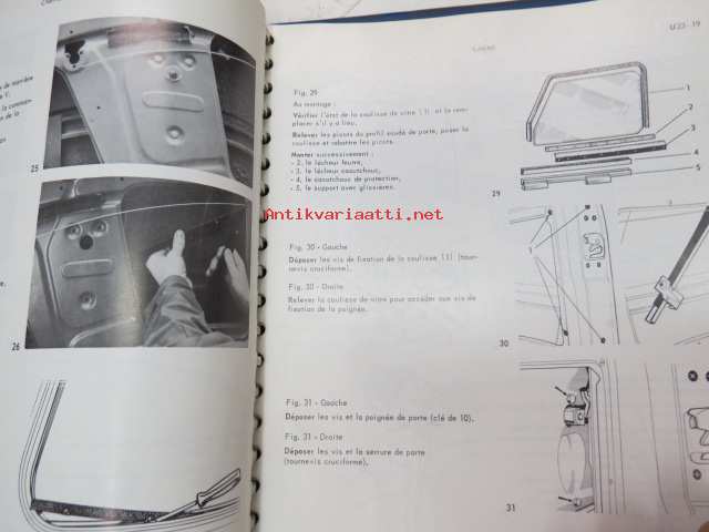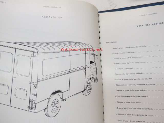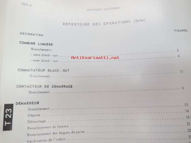Saviem MR 200 T 23 Équipementnt Électrique Type TP 3L 39 - T 24 Cheminement des faisceaux, U 23 Cabine 822, U 24 Fourgon SB 2, V 22 Carcasse plateau, Carcasse Fourgon et plateau -korjaamokäsikirjan osa