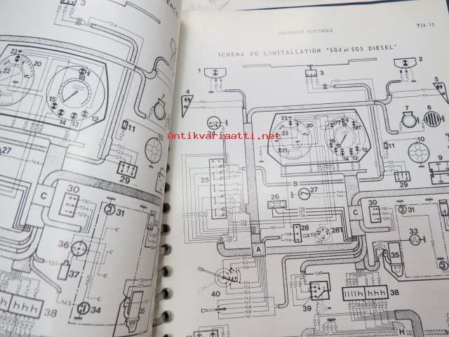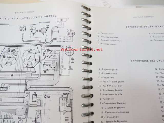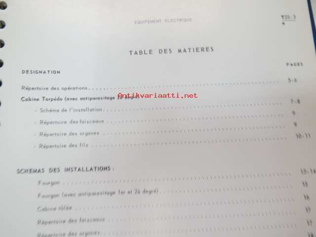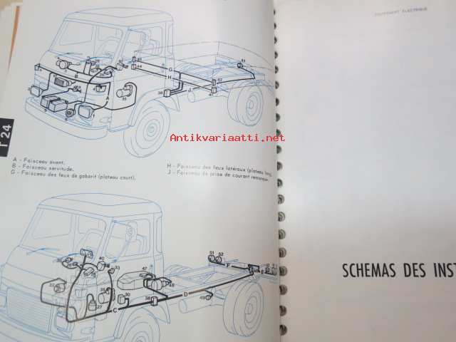 Saviem MR 200 T 23 Équipementnt Électrique Type TP 3L 39 - T 24 Cheminement des faisceaux, U 23 Cabine 822, U 24 Fourgon SB 2, V 22 Carcasse plateau, Carcasse