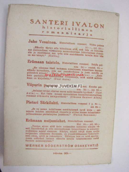 Ivalo Santeri, WSOY, 192413 x 19 cm kirja.