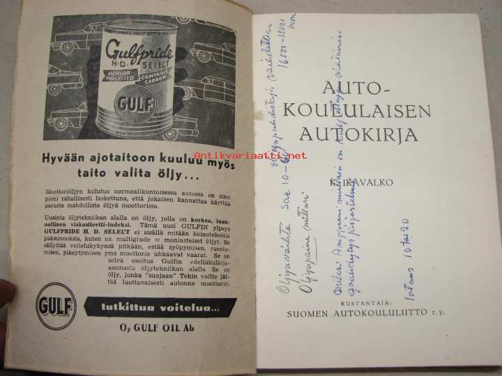 Ikävalko K., Suomen Autokoululiitto ry, 195613 x 18 cm kirja.