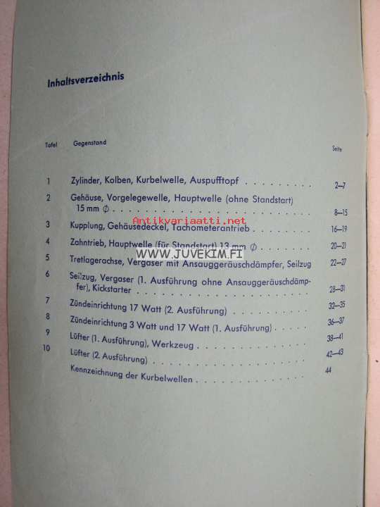 | Saatavilla | 1 kpl | | Julkaisuvuosi | 19?? | | Sivuja | 44 | | Kunto | K3 | | Sidonta/painoasu | Nidottu (pehmeäk.) | | Kielet | Saksa |