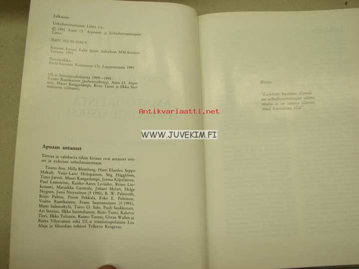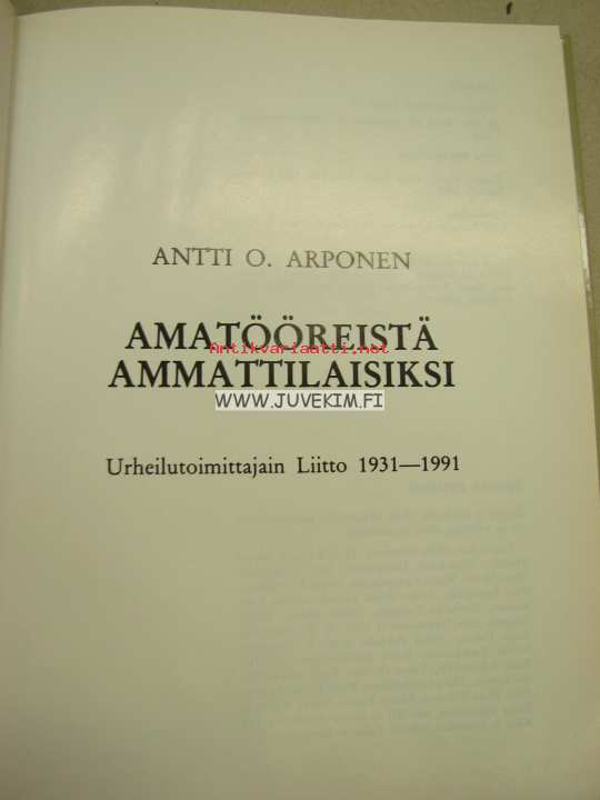 Arponen Antti O., Urheilutoimittajain Liitto, 199118 x 26 cm kirja.
